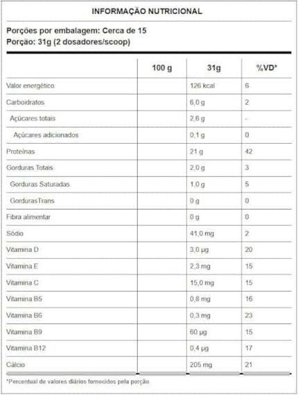 Ingredientes   Concentrado proteico de soro de leite (concentrado proteico de soro de leite e emulsificante lecitina), maltodextrina, mix de