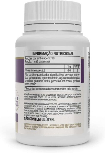 Ingredientes Lactobacillus acidophilus, Lactobacillus casei, Lactococcus lactis, Bifidobacterium bifidum, Bifidobacterium lactis e agentes de massa amido de milho e
