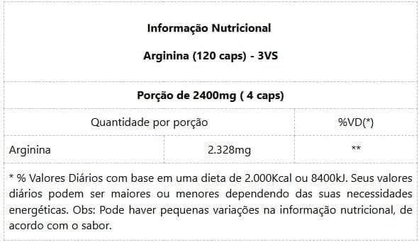 Seja o primeiro a avaliar “3VS Nutrition 100% Arginina Pura 120 caps”