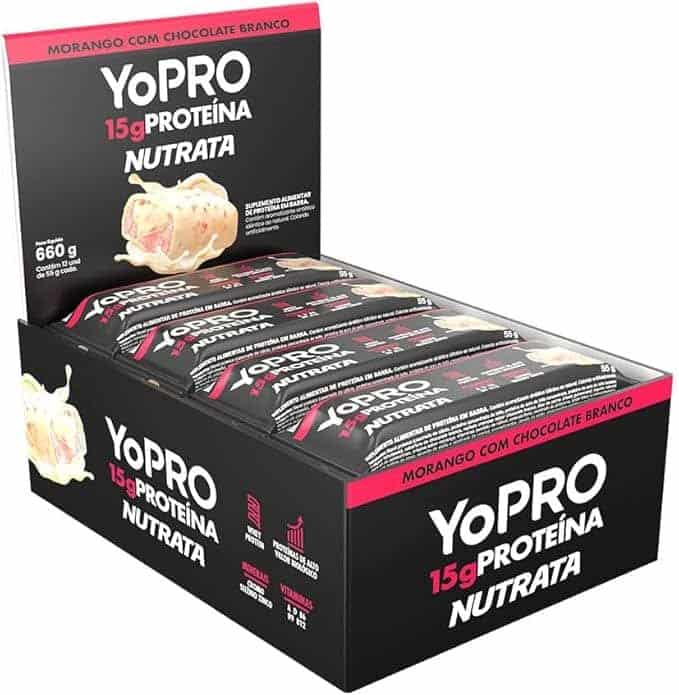 Barra YoPRO Sabor Morango com Chocolate Branco – Nutrata Display C/ 12 Barras de 40g