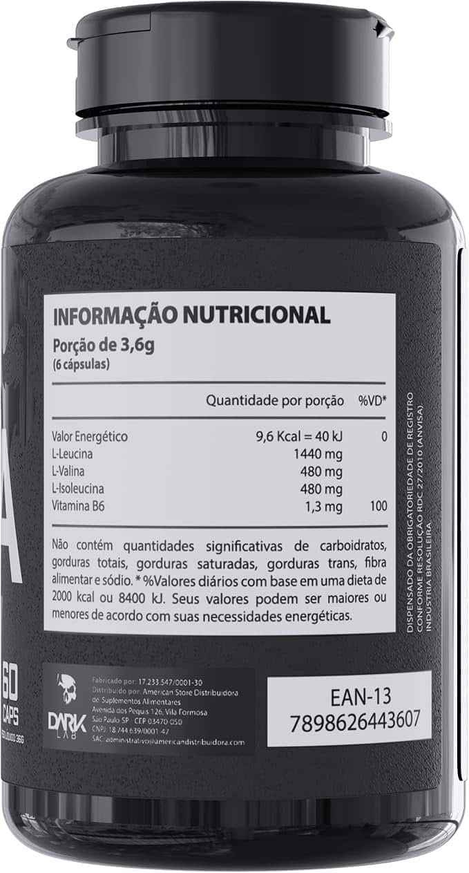 Em até 3x de R$ 26,75 sem juros BCAA 3:1:1 Dark Lab, 60 Cápsulas, Aminoácidos, Recuperação Muscular