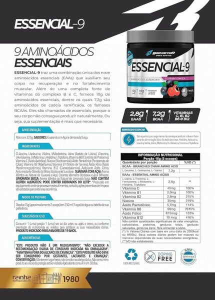 Em até 2x de R$ 28,50 sem juros Essencial 9 EAA Aminoácios Essenciais 225g Sabor Guaraná com açaí Bodyaction
