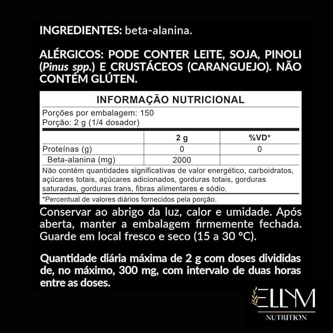 Em até 2x de R$ 24,75 sem juros Beta Alanina Pura 300g ELLYM NUTRITION Performance Para Treino e Recuperação Muscular Pós Treino