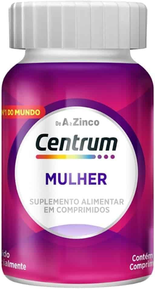 Centrum Mulher é um polivitaminico que conta com 23 micronutrientes essenciais para a saúde de cabelos, pele e unhas. A vitamina cabelo e unha contém 100% do valor diário recomendado de vitamina B6, vitamina B12 e biotina, trazendo uma ingestão adequada desses nutrientes. Com alto teor de vitamina C, vitamina E, Vitamina A, zinco, cobre e selênio, o Centrum possui antioxidantes vitais que trabalham contra danos dos radicais livres. Suplemento Centrum Mulher também conta com Ácido Pantotênico, complexo B, Vitamina B12 e Ferro para o metabolismo energético. É sugerido o consumo diário de um comprimido, e não é indicado para crianças e deve-se respeitar a dose recomendada. Centrum suplemento vitaminico para Mulher é livre de glúten, açúcares e colesterol. É a marca de multivitamínicos mais recomendada pelos médicos no Brasil, dando suporte à saúde feminina. Nossas vitaminas e suplementos são especialmente formulados para a sua saúde e bem estar. *Marca de Multivitamínico