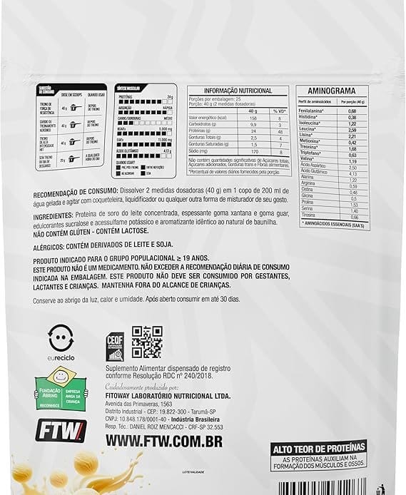 FTW 100% Whey Protein com Proteína Concentrada WPC, para Atletas com Alto Valor Biológico, Suplemento Pós-Treino Sem Glúten – Refil 1kg (Baunilha)