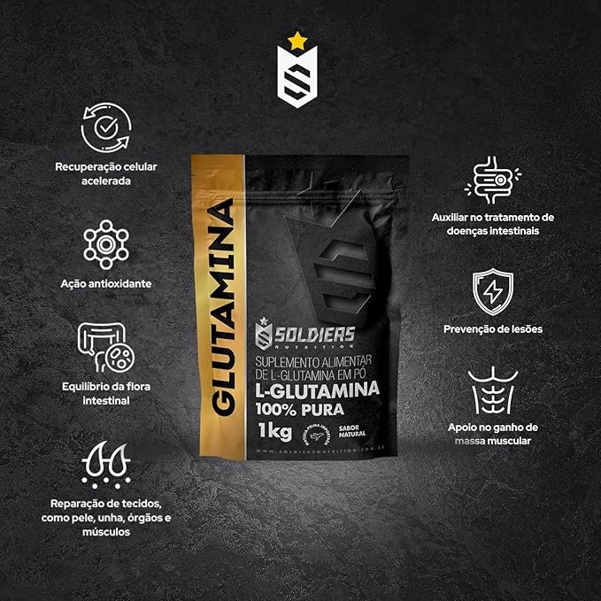 Em até 3x de R$ 39,75 sem juros L-Glutamina 1kg – 100% Pura Importada – Soldiers Nutrition