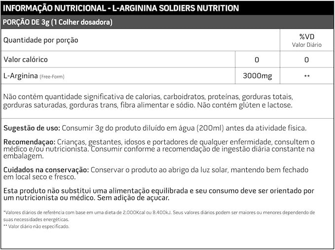Arginina 500g – 100% Puro Importado – Soldiers Nutrition