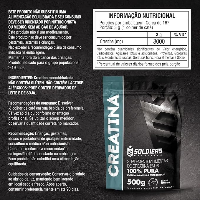 Em até 3x de R$ 33,00 sem juros Soldiers Nutrition Creatina Monohidratada 500g