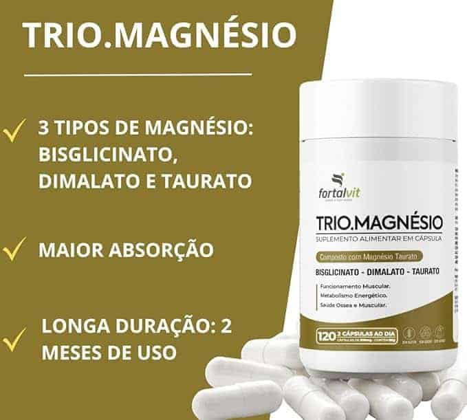 TRIO.MAGNÉSIO – Longa Duração: 2 Meses de Uso, Bisglicinato – Dimalato – Taurato, 260mg Alta Concentração,120 Cápsulas, Fortalvit