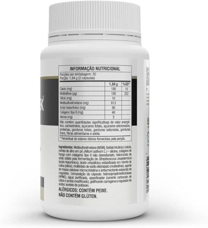 Colágeno hidrolisado, L-glutamina, bisglicinato de magnésio (magnésio), hialuronato de sódio obtido pela fermentação de Streptococcus zoopidemicus, ácido ascórbico (vitamina C), bisglicinato de zinco (zinco), colecalciferol (vitamina D3), aroma idêntico ao natural, acidulante ácido cítrico, antiumectante dióxido de silício, espessante goma xantana, corante carmin e edulcorantes glicosídeos de esteviol (estévia) e taumatina.