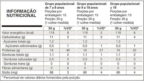 SUGESTÃO DE USO: Acrescente 30g ao alimento a sua preferência. Pode ser consumido juntamente com cereais matinais, frutas, pudins, sorvetes, gelatinas, açaí, sopas ou saladas. Ou consuma conforme orientação profissional. INGREDIENTES: Neutro: Blend proteico [proteína de soro do leite isolada (whey protein isolate – wpi) e proteína de soro do leite concentrada (whey protein concentrate – wpc), farinha de arroz e lecitina de soja. ALÉRGICOS: CONTÉM LEITE E DERIVADOS DE LEITE E SOJA. CONTÉM LACTOSE. NÃO CONTÉM GLÚTEN.