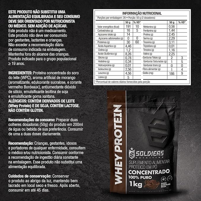 Whey Protein Concentrado 1Kg – Chocolate Belga – 100% Puro Importado – Soldiers Nutrition